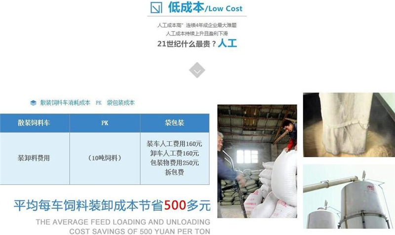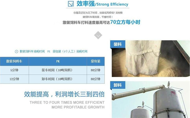 散裝飼料車的優(yōu)勢: 散裝飼料的生產(chǎn)可實現(xiàn)直接生產(chǎn)直接裝車,隨產(chǎn)隨出,不需要進行提前備貨,不占用倉儲設施,也不會出現(xiàn)停產(chǎn)等待拉料的現(xiàn)象,使飼料生產(chǎn)實現(xiàn)計劃管理,生產(chǎn)效率得到提升。 ★獨有倒梯形設計,散裝飼料在罐體內密封輸送,V字形罐體卸料順暢,減少飼料的耗損,保證質量,避免污染。 ★運輸比包裝成袋運輸不但節(jié)省勞動力,而且成本較低。 ★可選電動卸料、全液壓卸料、氣卸為全自動上料卸料,可連續(xù)作業(yè),大大提高生產(chǎn)效率。 ★罐體內可加裝分倉,可同時運輸多種不同類的飼料或膨人介質。部件標準化,容易維修保養(yǎng)。 頂部進料倉